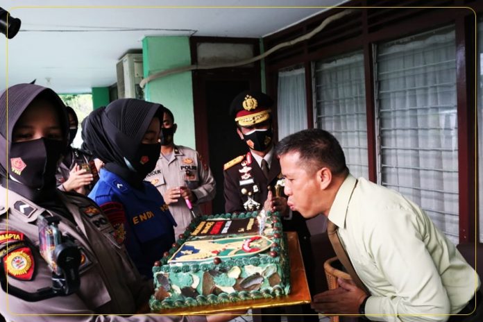 BENGKULU, sahabatrakyat.com- Kapolda Bengkulu Irjen Pol. Drs. Teguh Sarwono,M.Si memberi kejutan berupa kue ulang tahun kepada Danrem 041/GAMAS, Senin pagi (05/10/2020) di rumah dinasnya. Kejutan ini sebagai ucapan selamat hari ulang tahun (HUT) TNI yang ke-75 tahun.