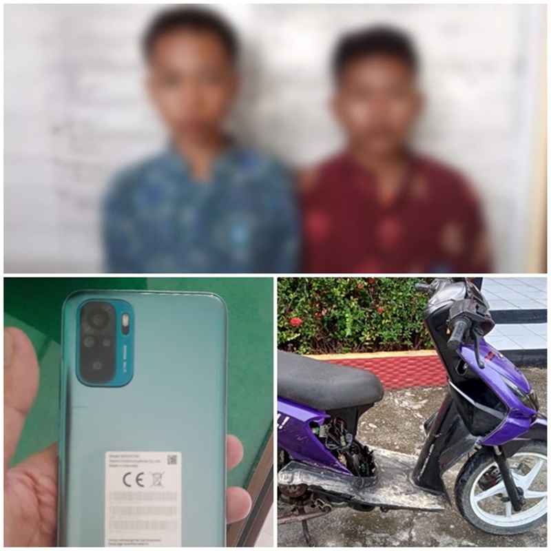 “Dari kedua tersangka kami sita barang bukti berupa 1 unit handphone merk Redmi note 10 dan 1 unit handphone merk Redmi Note 10 , serta 1 unit motor matic jenis Honda Beat,” pungkas Kasie Humas. (rls)