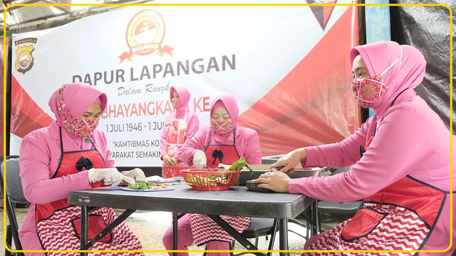 Ny. Wulan Teguh Sarwono mengatakan dalam kegiatan yang difokuskan di Pospol Sport Center Pantai Panjang Kota Bengkulu tersebut juga didirikan dapur lapangan guna menyiapkan makanan siap santap kepada masyarakat. “Semoga yang kita lakukan ini mendapat barokah dari Allah SWT,” ujarnya.