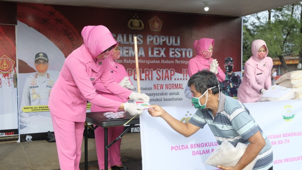 BENGKULU, sahabatrakyat.com – Jelang puncak HUT Bhayangkara ke-74, Polda Bengkulu bersama Bhayangkari kian gencar melaksanakan kegiatan bakti sosial guna membantu masyarakat yang terkena dampak Covid-19.