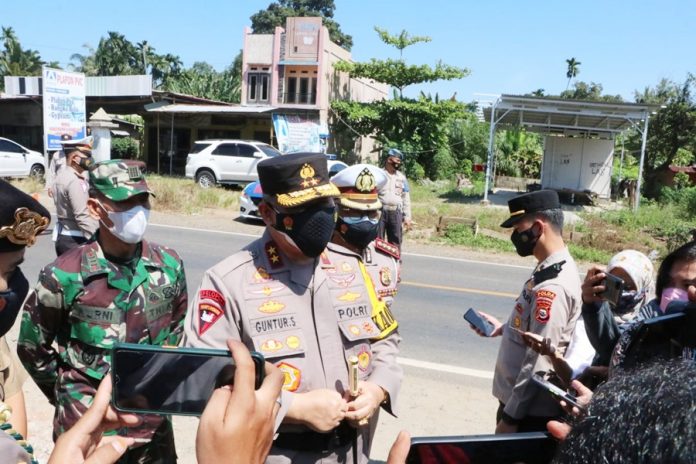 Kapolda Bengkulu Irjen Pol Drs. Guntur Setyanto, M.Si., disela – sela memantau penyekatan hari ini (27/07/21) mengungkapkan, penyekatan dilakukan berdasarkan pemberlakukan pembatasan kegiatan masyarakat untuk menekan penyebaran Covid 19 yang kian hari kian naik jumlah kasus konfirmasi positifnya.
