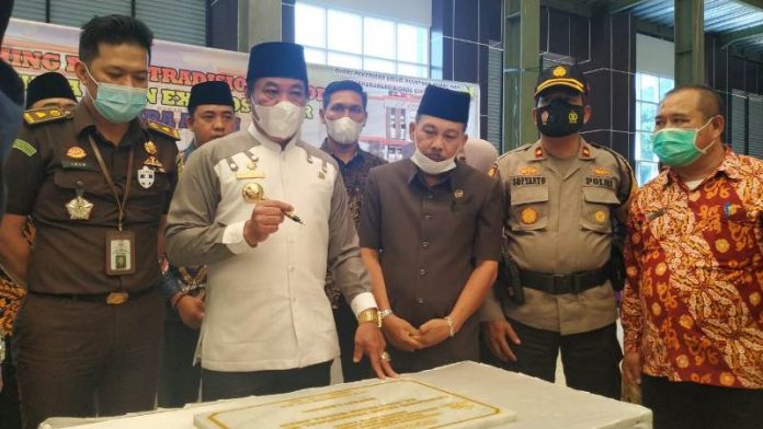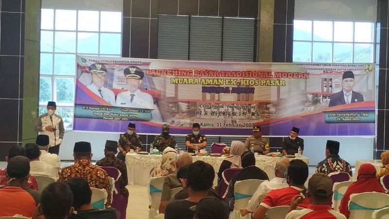 Dr. H. Rosjonsyah SIP, MSi meresmikan Pasar Tradisional atau PTM di Kelurahan Pasar Muara Aman, Lebong Utara, Kamis (11/2/2021). PTM ini memang menjadi salah satu proyek dalam program strategis daerah dalam rangka meningkatkan sektor perekonomian.