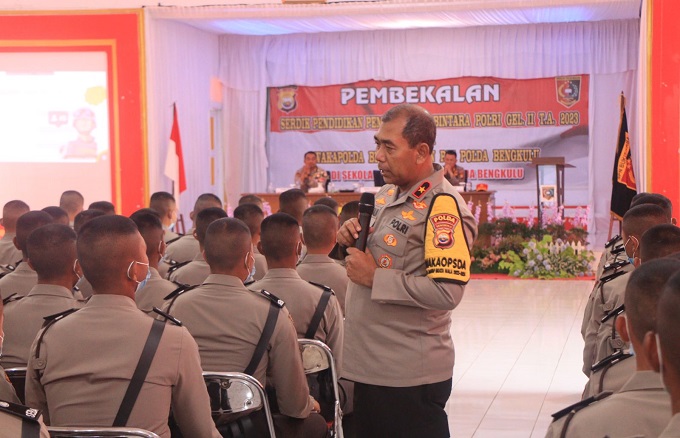 BENGKULU – Wakapolda Bengkulu Brigjen Pol Agus Salim beserta rombongan yang terdiri dari Karo Rena, Karo SDM dan Dir Intelkam Polda Bengkulu, memberikan pembekalan kepada para peserta Serdik Diktuba Polri Gelombang II TA 2023. Kegiatan ini dilaksanakan di SPN Bukit Kaba Polda Bengkulu, pada hari ini (20/12/23).